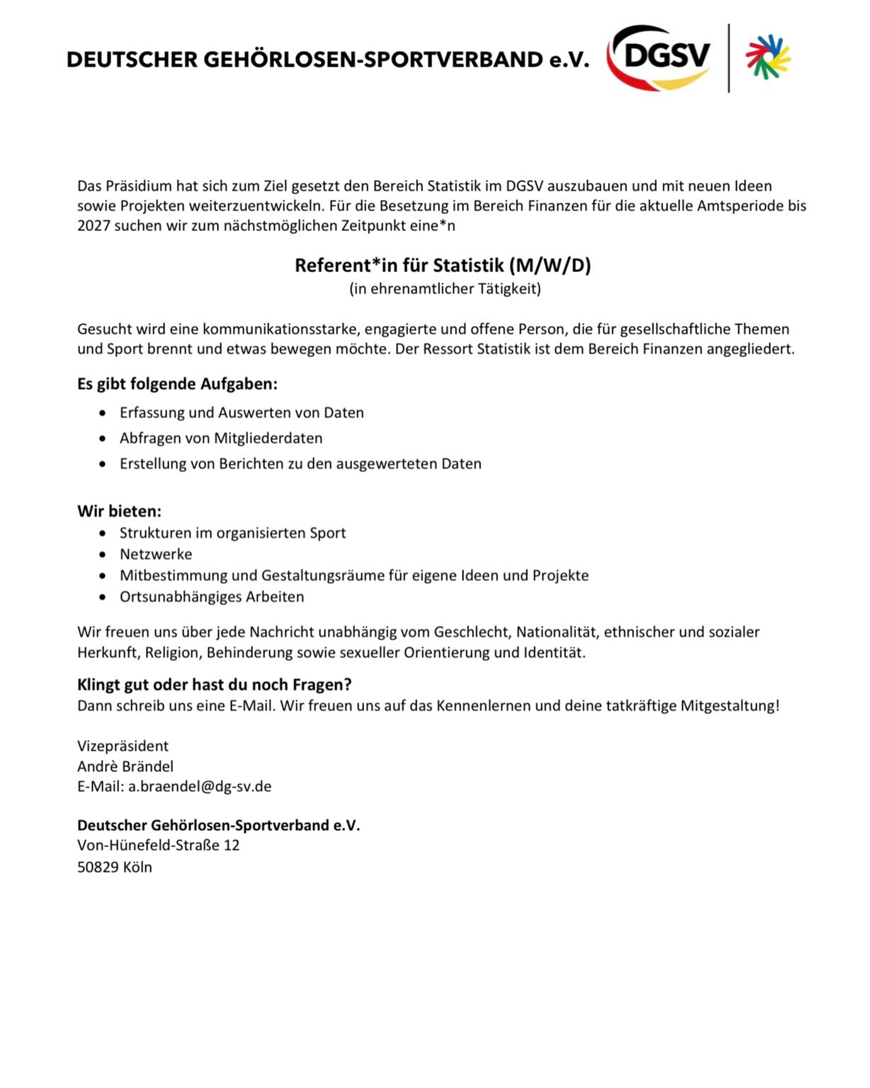 🤝 Ehrenamt: Referent*in für Statistik