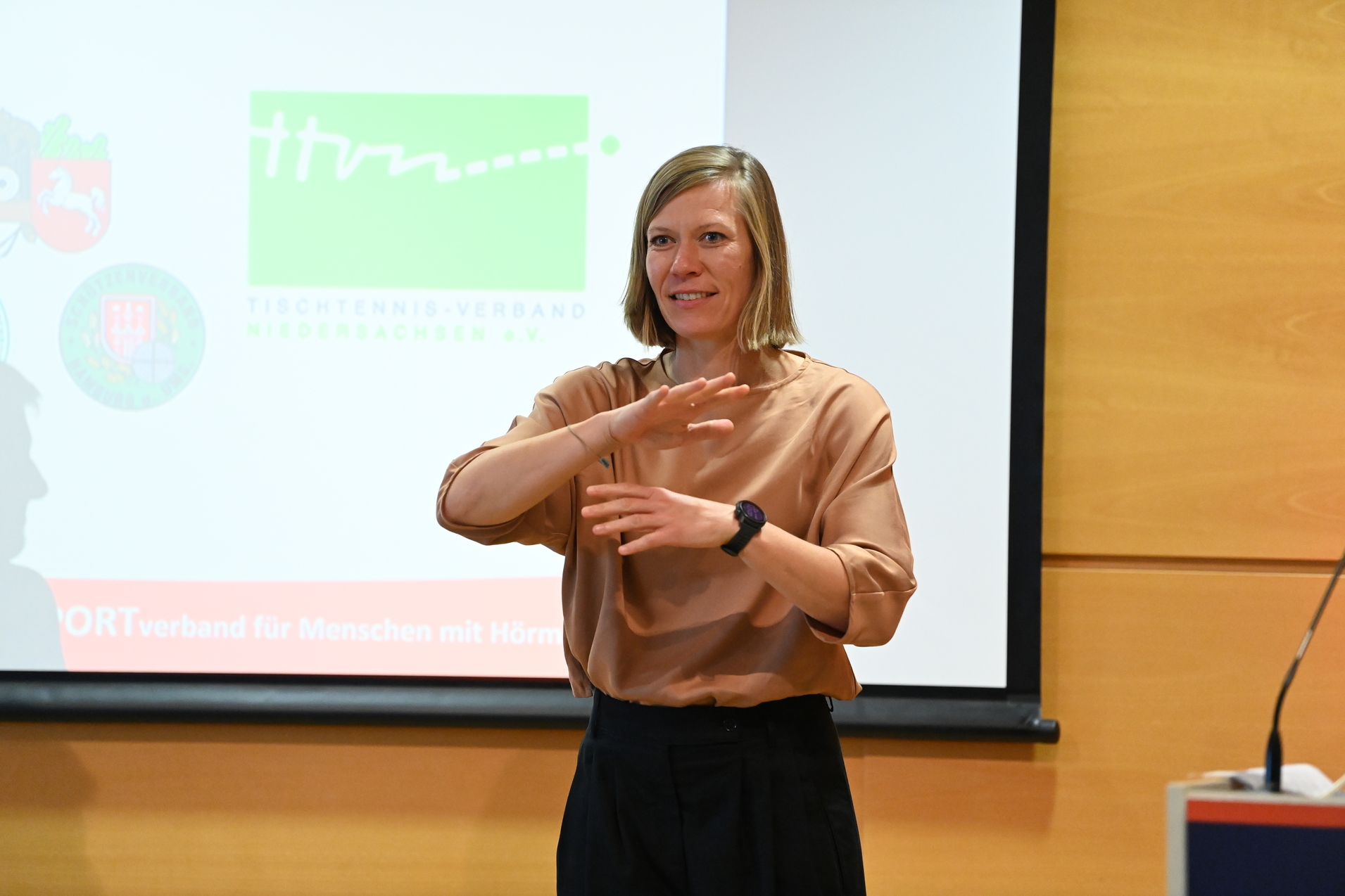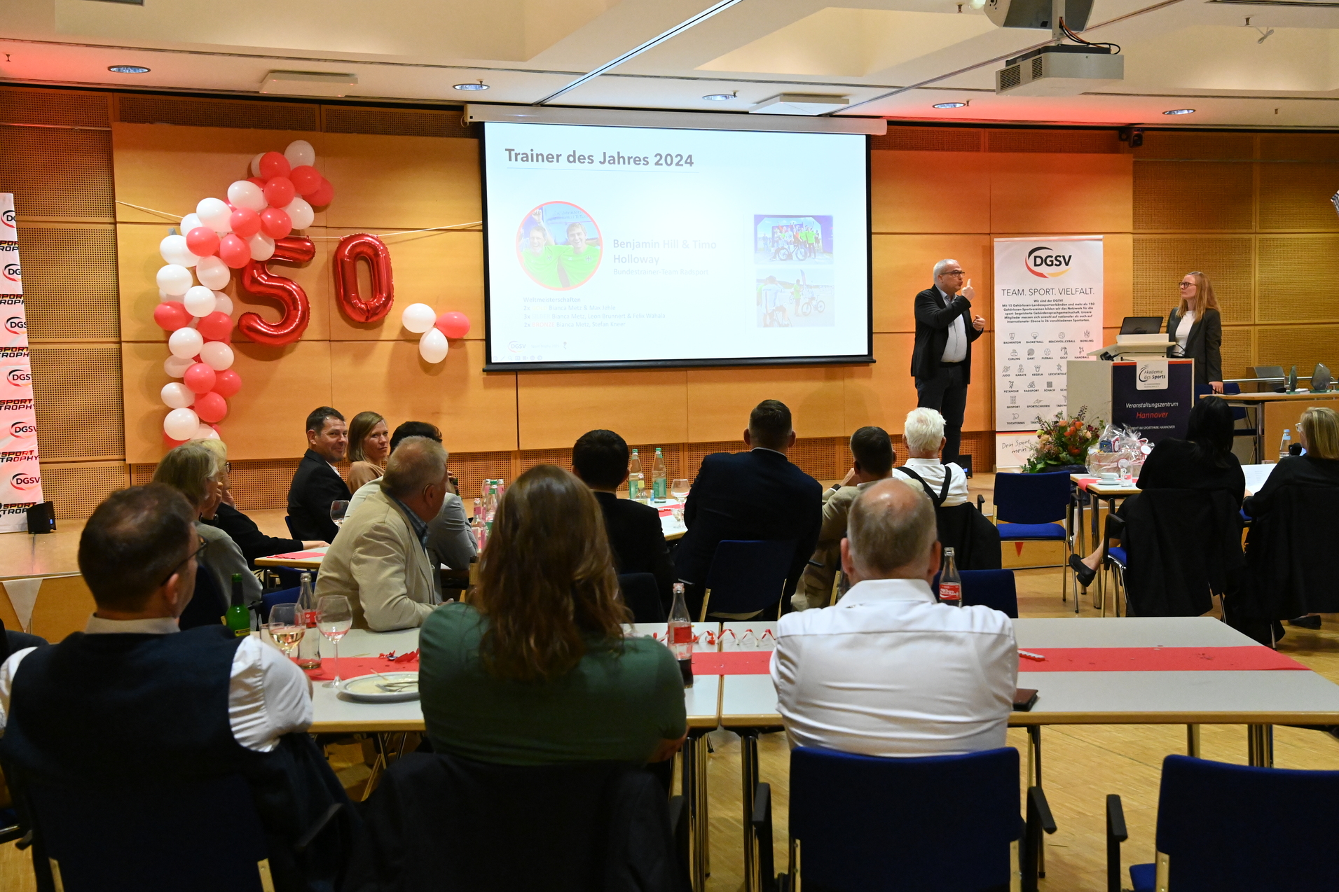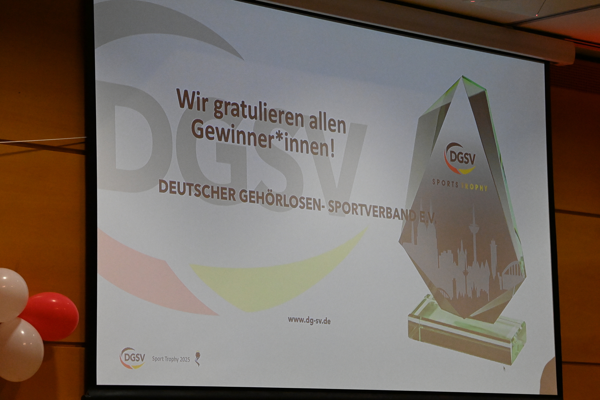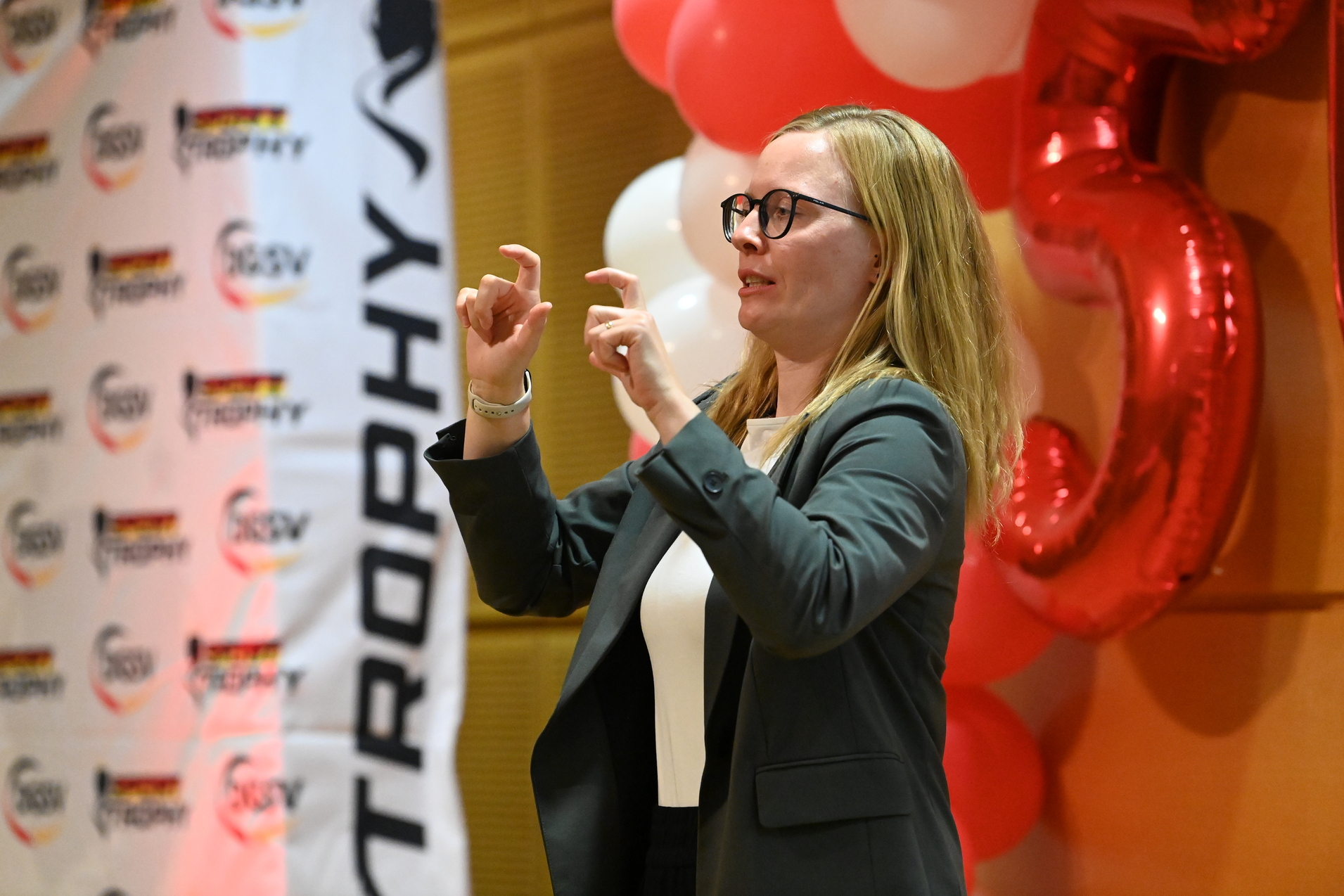 Am Samstag feierte der Gehörlosen Sportverband Niedersachsen (GSN) sein 50-jähriges Bestehen. Im Rahmen des Jubiläums übergab unsere Präsidentin Katharina Pape eine Urkunde an den GSN. Im Anschluss wurde die SportTrophy, organisiert vom DGSV, für die herausragenden Leistungen der Athletinnen und Athleten verliehen.