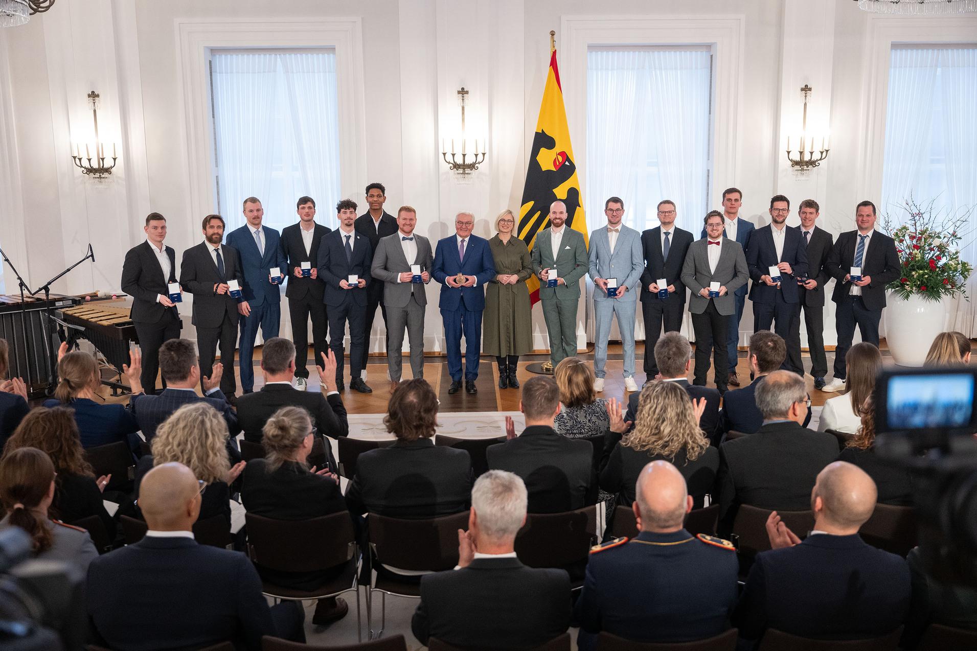 Im Schloss Bellevue wurden die erfolgreichen deutschen Deaflympics-Athletinnen und -Athleten am 04.02. im Rahmen einer feierlichen Zeremonie mit dem Silbernen Lorbeerblatt geehrt. Bundespräsident Frank-Walter Steinmeier sowie die Staatsministerin für Sport und Ehrenamt, Christiane Schenderlein, empfingen die gehörlosen Sportlerinnen und Sportler in würdigem Rahmen.