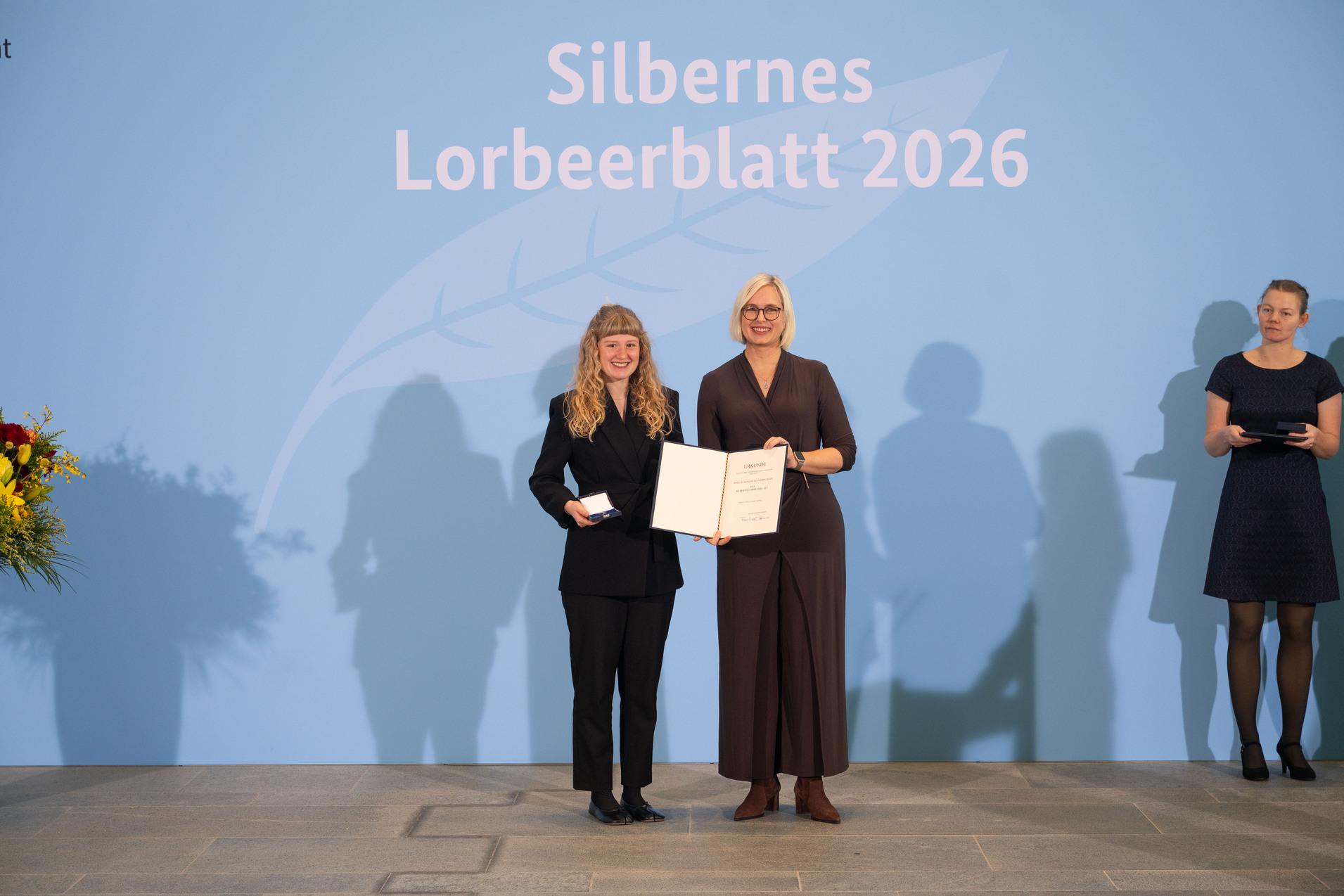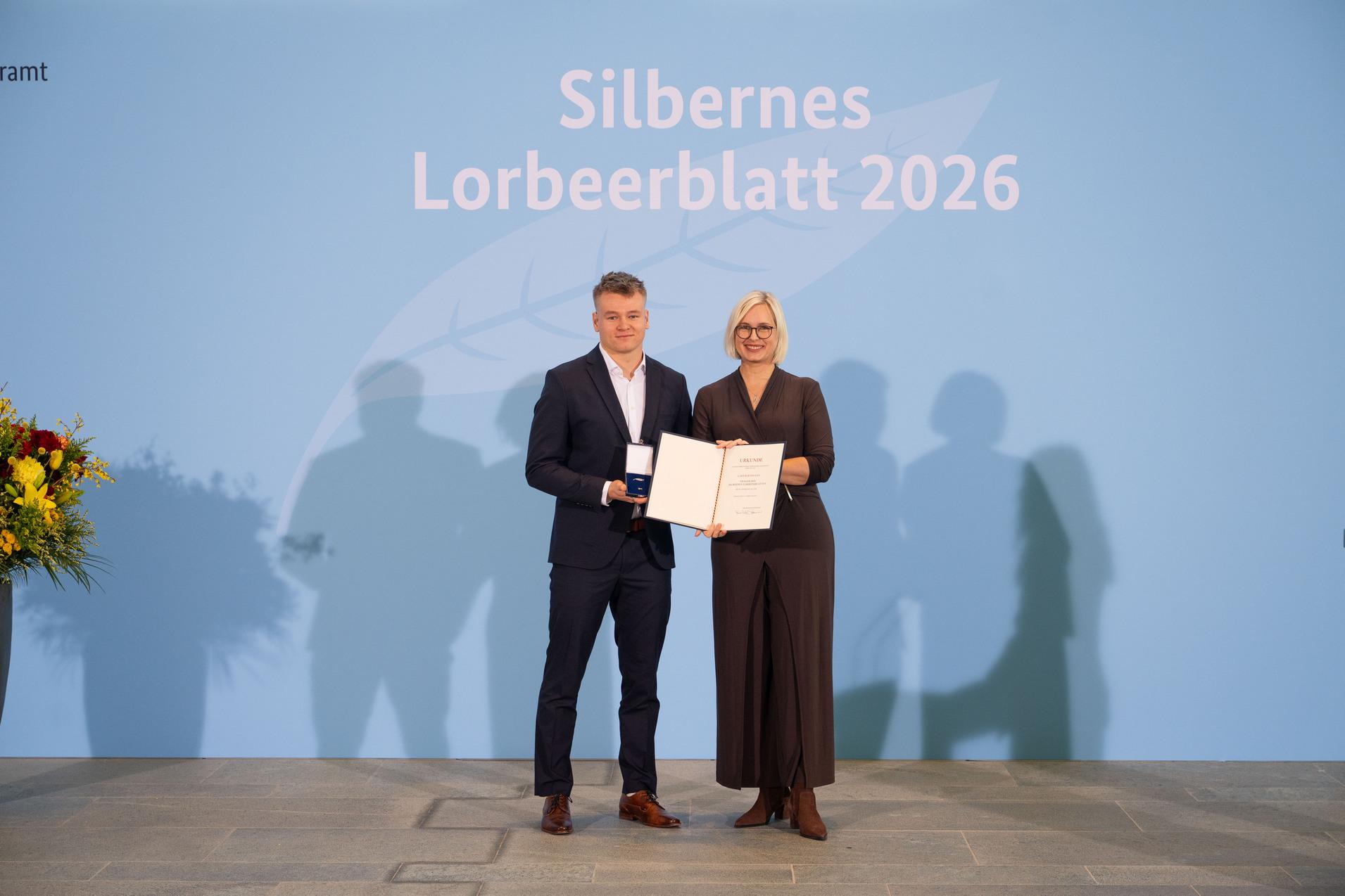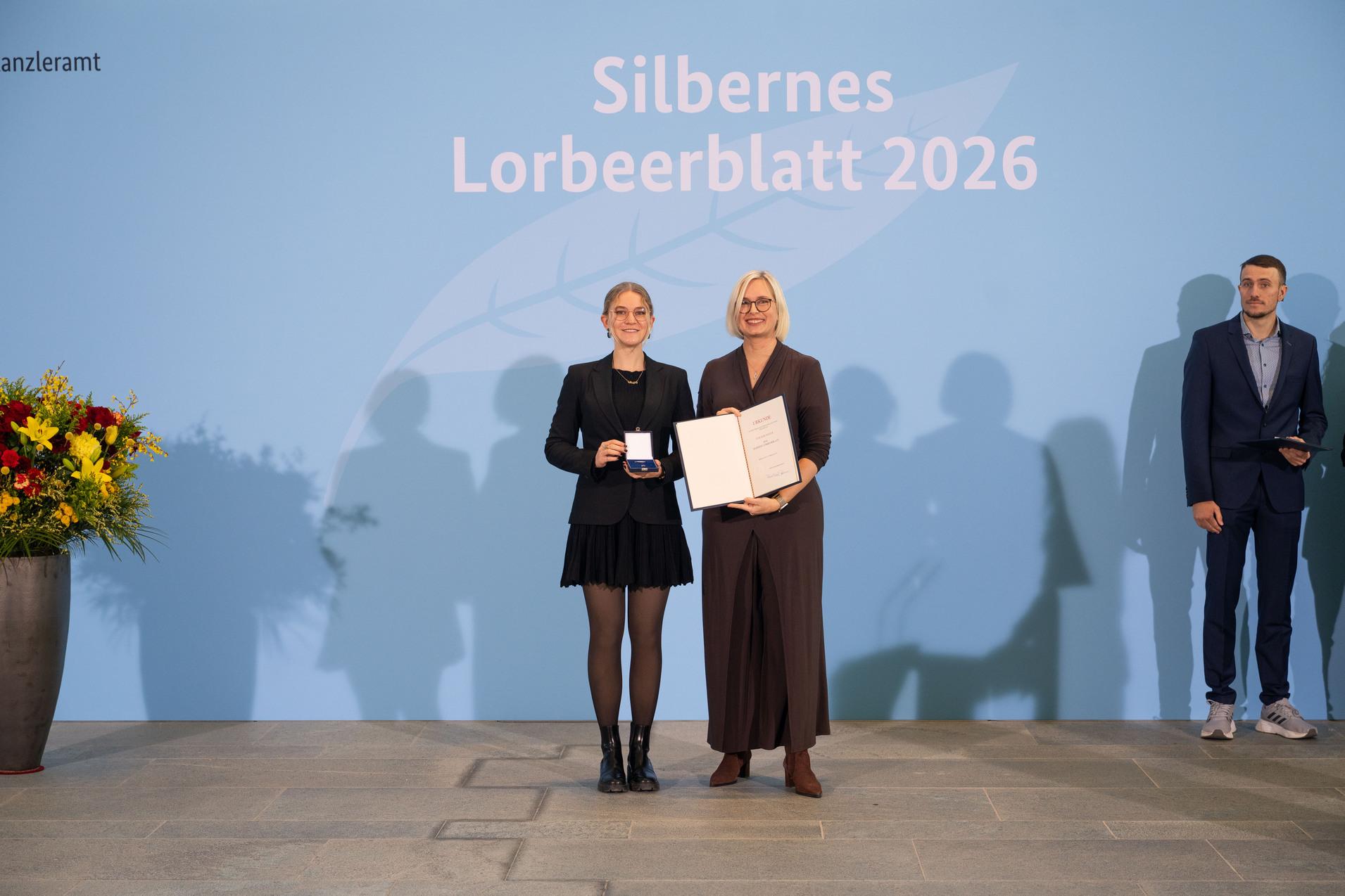 Am 19. Januar 2026 wurde im Berliner Bundeskanzleramt das Silberne Lorbeerblatt verliehen. Die höchste staatliche Auszeichnung für sportliche Leistungen in Deutschland überreichte Staatsministerin Dr. Christina Schenderlein, Staatsministerin im Bundeskanzleramt mit Zuständigkeit für Sport, in einer feierlichen Zeremonie.